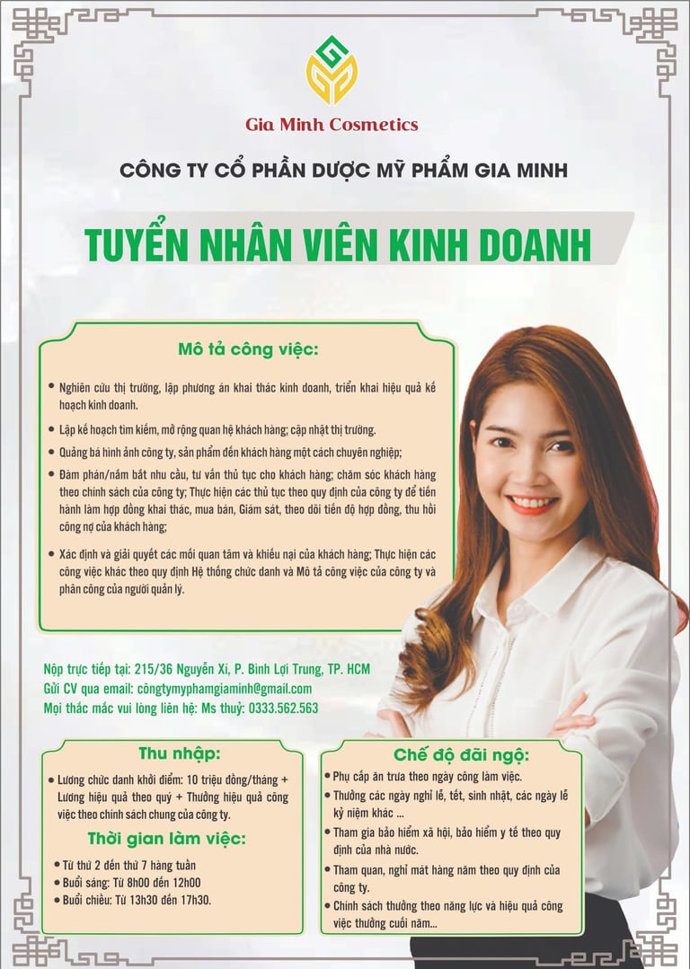 Tuyển Dụng Nhân Viên Kinh Doanh Dược Mỹ Phẩm